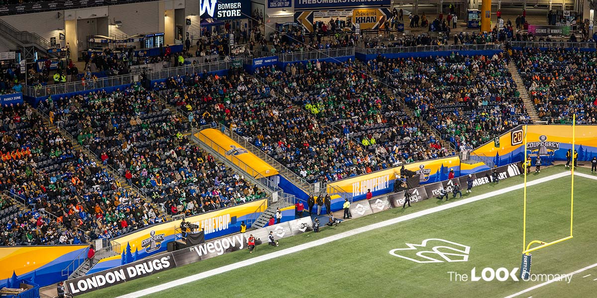 WINNIPEG, MANITOBA, CANADA, November 18, 2025 -- The Look Company, creators of large-scale visual branding for retail, sport and event environments, was selected by the Canadian Football League (CFL) to dress the stadium, surrounding in-bowl areas and the festival for the 112th Grey Cup championship in Winnipeg. The company also produced exclusive designs for pop-up experiences at the University of Winnipeg and the RBC Convention Centre, indoors and out. This included creatively branded stairways, walkways, windows, overpasses, retail environments and premium outdoor interactive fan experiences. This is the company’s second year handling the branding for both the Grey Cup stadium and festival—a project that is usually divided among multiple providers.